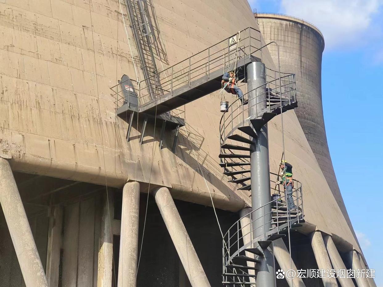 间隙处理:爬梯与冷却塔壁间隙用柔性密封材料填充,防止积水腐蚀。